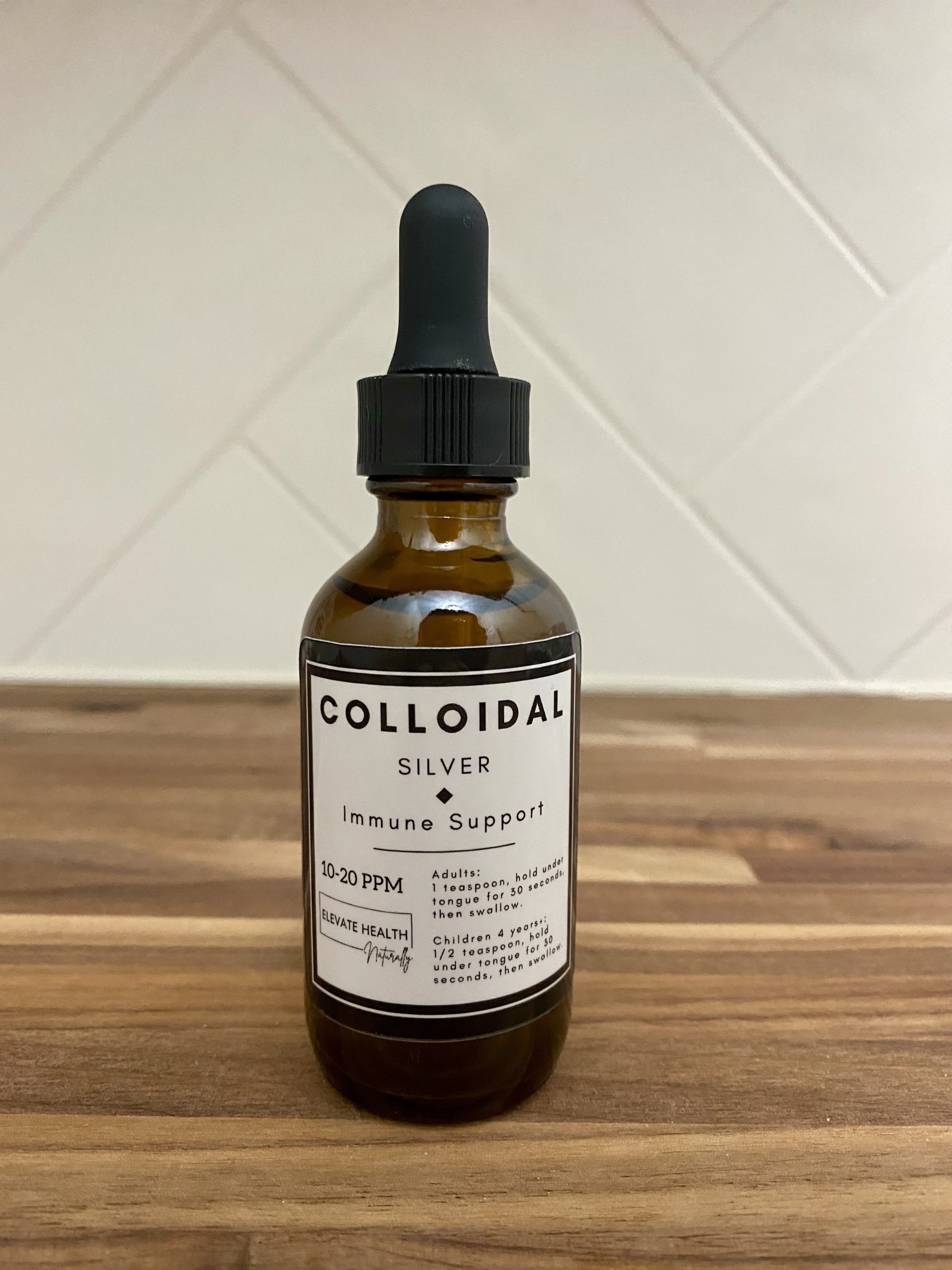 2oz glass bottle of colloidal silver w/ glass dropper. Each bottle is minimum 10PPM.