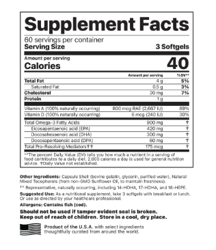 Jigsaw Alaskan Cod Liver Oil™ from sustainably sourced, line-caught, MSC® certified cod fish in Dutch Harbor, Alaska provides important Omega-3 fatty acids, Pro-Resolving Mediators (PRMs), and naturally occurring Vitamins A & D to promote immune health, brain health, eye health, and circulatory health.