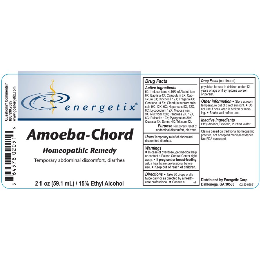 Amoeba-Chord is a homeopathic combination formula for symptoms related to the presence of waterborne parasites. The symptoms may be recent or long-standing.