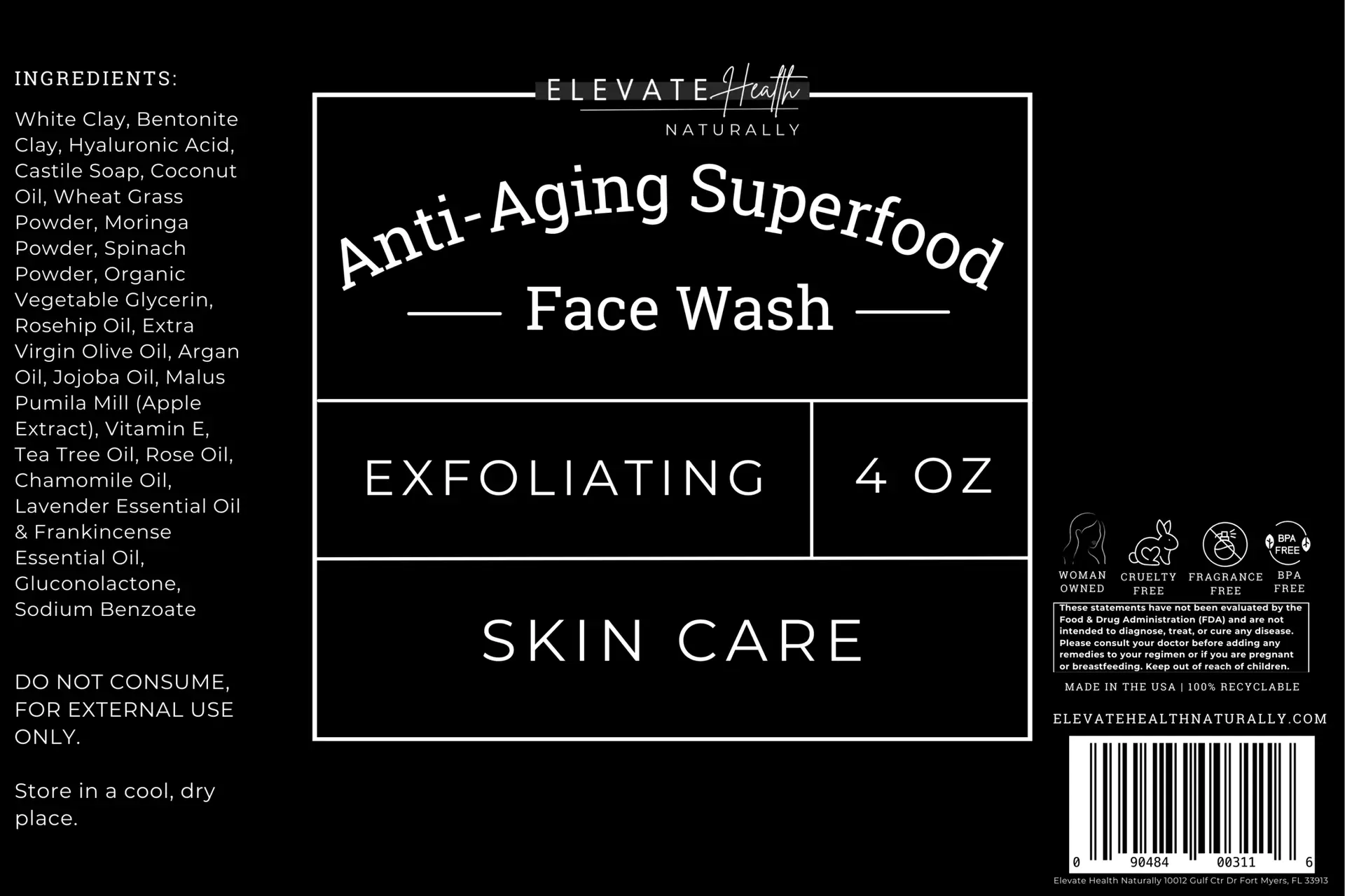 Anti-Aging Superfood Face Wash is a mineral-rich, antioxidant-supportive cleanser designed to gently purify while helping skin maintain a soft, youthful appearance. Powered by superfood botanicals, nourishing oils, and hydrating hyaluronic acid, this formula supports a refreshed, balanced complexion without leaving skin feeling tight or depleted.