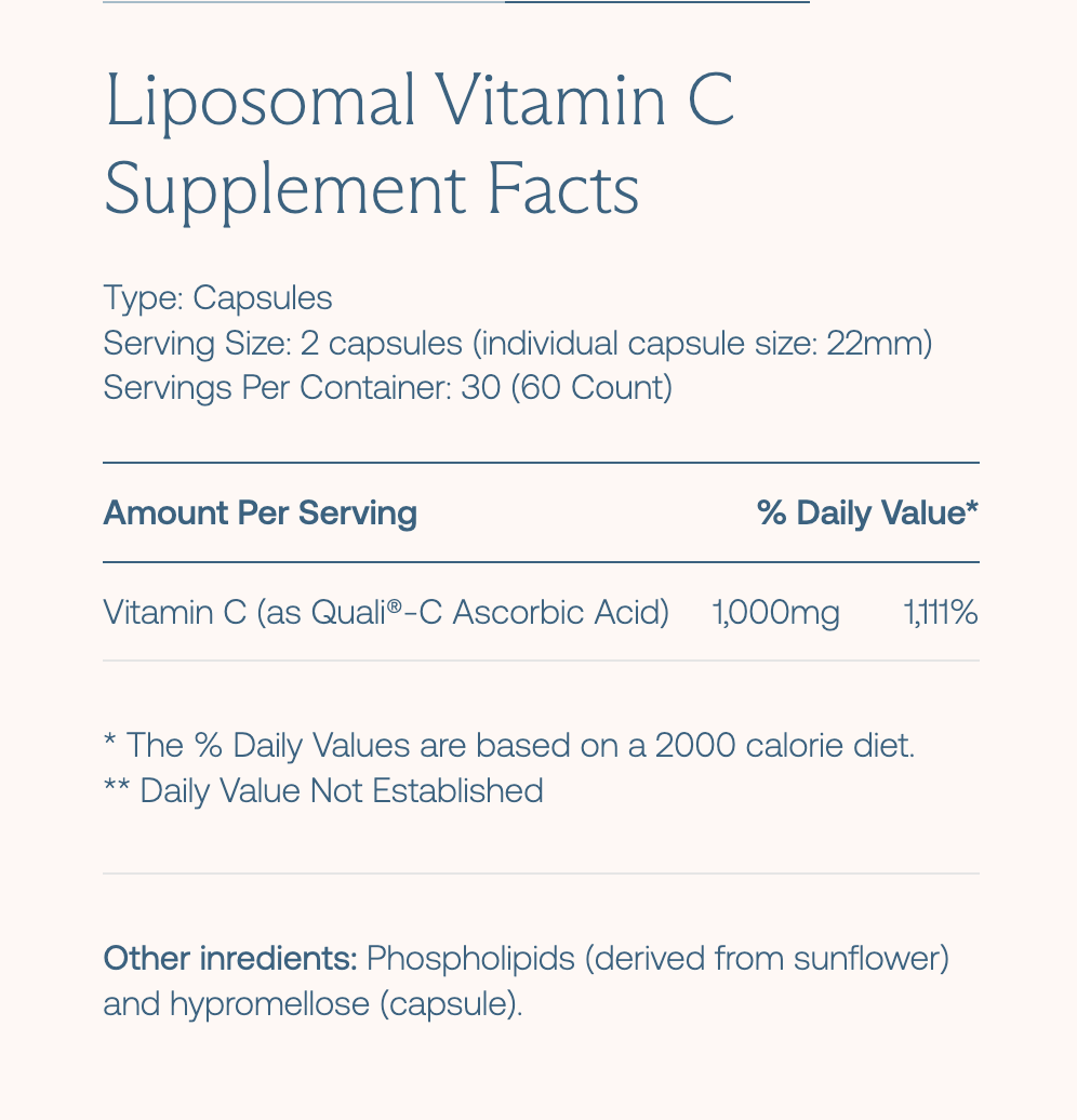 Liposomal Vitamin C also protects the body from free radicals, toxins, environmental pollutants, stress, and supports healthy detoxification pathways.* Use Liposomal Vitamin C for daily support and/or in times of acute stress on the body, such as coming down with a cold or flu.