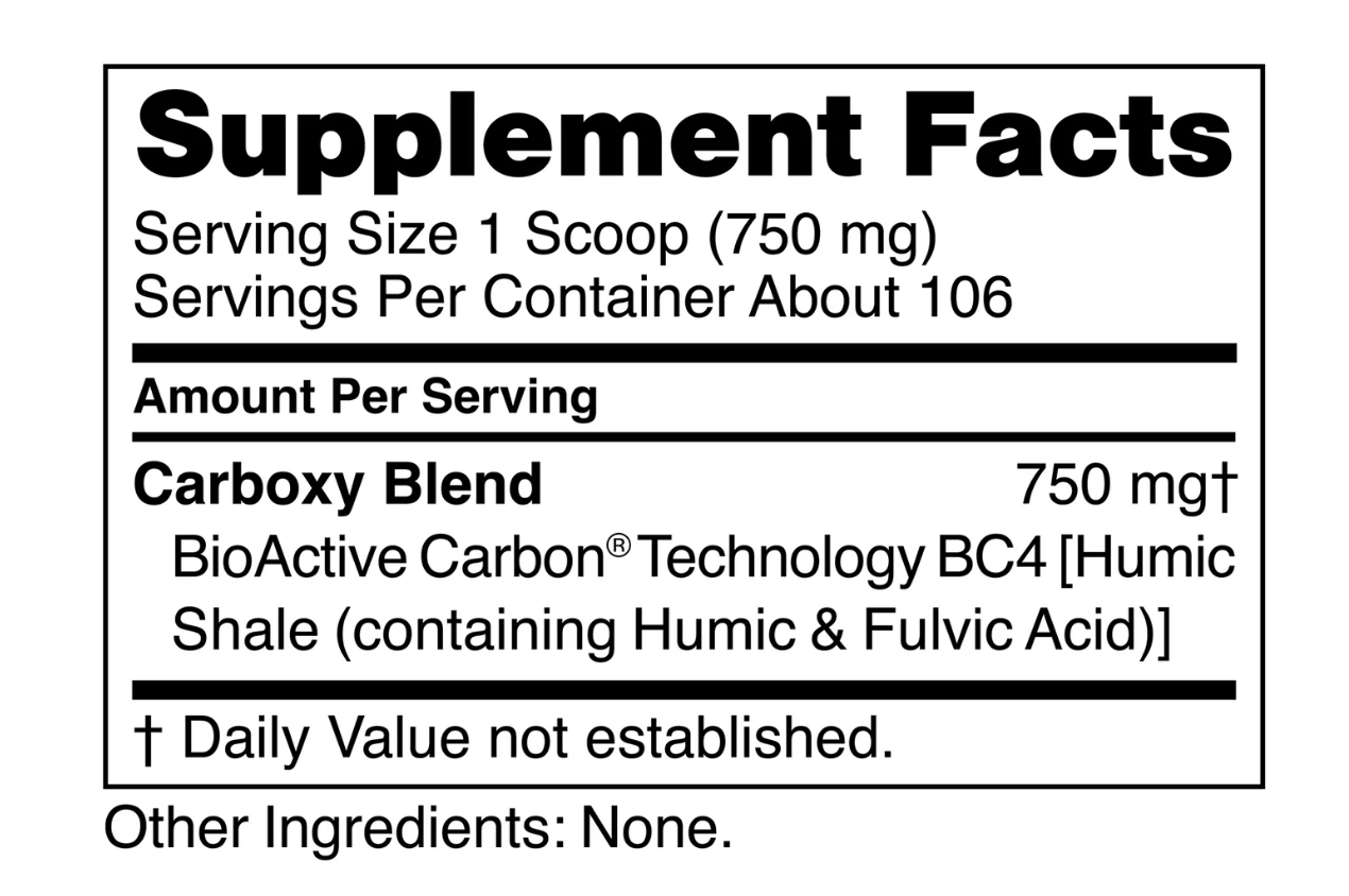 Carboxy contains electrolytes, humic and fulvic acid compounds, and polysaccharides, which help repair damage done to cells by toxins. It also promotes increased energy production at the cellular level. This repairative mechanism and ability to promote life is what sets Carboxy apart from traditional binders.