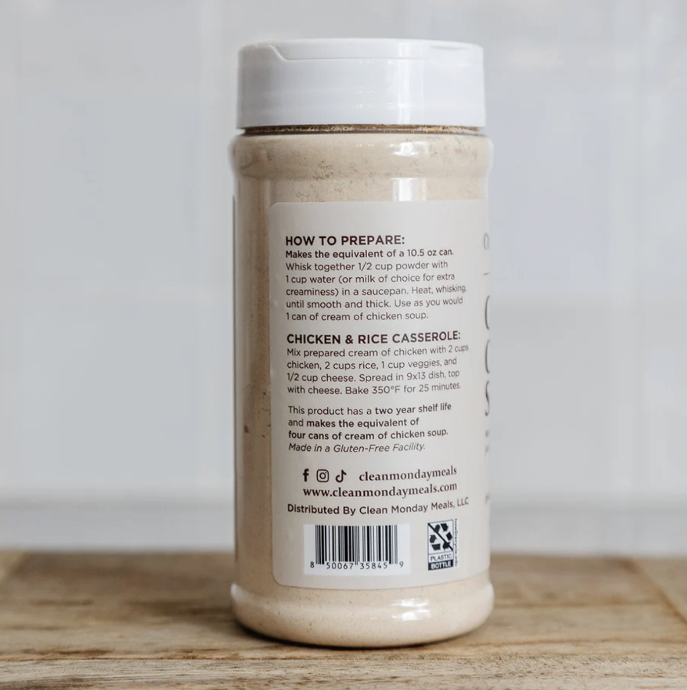 Simply whisk the mix into water or milk of choice for a luxuriously creamy soup base. Use it as a shortcut in casseroles, sauces, gravies, or anywhere your recipe calls for a can of cream of chicken soup.