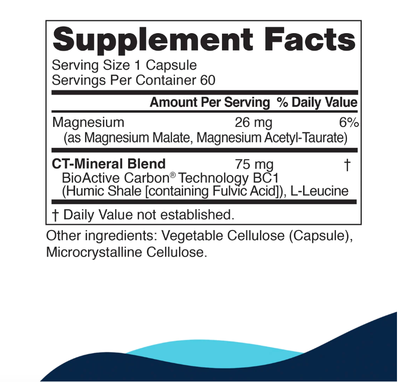 The CT-Minerals capsules have the same fulvic acid formula as the previous liquid supplement, but now include magnesium to enhance the mineral content. Magnesium is one of the most needed minerals in the body and is depleted by daily stress.*