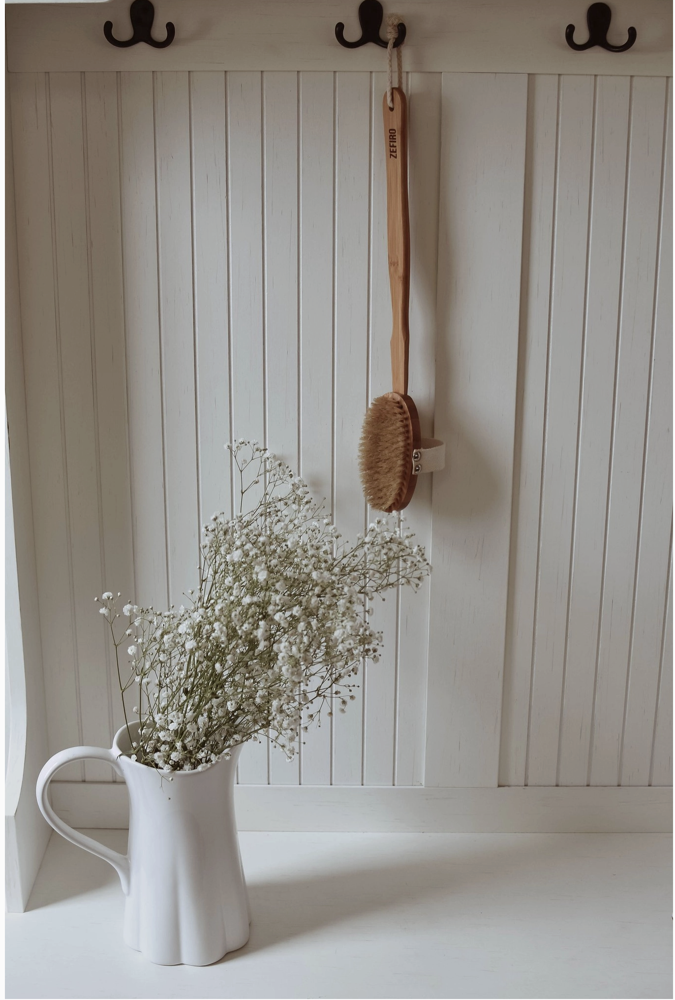 This brush is less abrasive than firmer dry brushes, making it ideal for those with sensitive skin or anyone new to dry brushing.