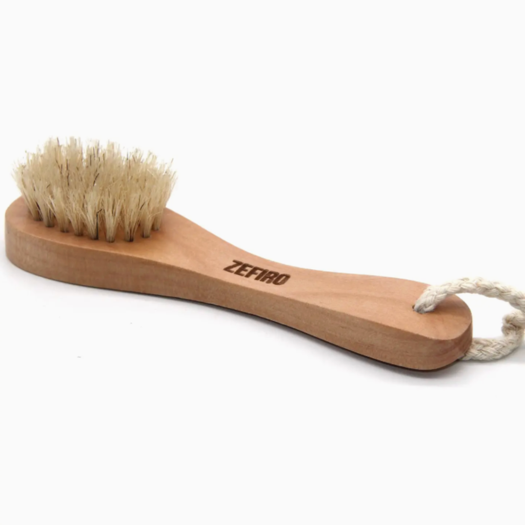 Many facial cleansing tools are made from plastic or synthetic bristles that can irritate skin and harbor bacteria. This brush offers a natural, reusable option that aligns with a low-toxin, minimalist skincare routine. Gentle enough for consistent facial care. This brush is intentionally softer than body brushes, making it appropriate for regular use on the face and neck.