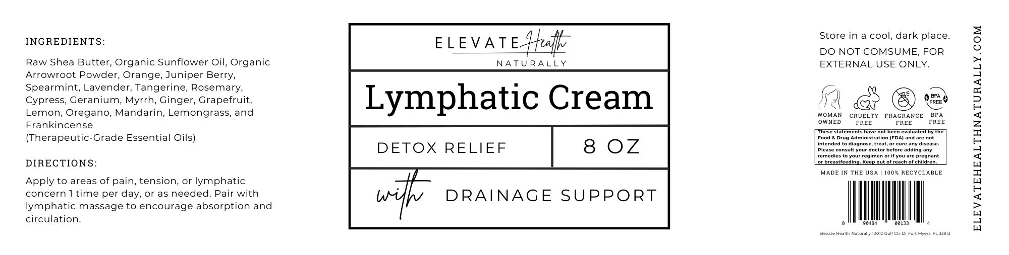 The lymphatic system is the body’s primary drainage network — responsible for moving toxins, cellular waste, and excess fluid out of tissues. When lymph becomes sluggish, the body can feel heavy, inflamed, puffy, or stuck in detox. Our Elevate Health Naturally Lymphatic Cream was created to gently stimulate flow, support drainage, and encourage healthy circulation using a powerful blend of plant-based oils and therapeutic-grade essential oils. This cream is deeply nourishing yet non-greasy, making it ideal for daily lymphatic massage and targeted detox support.