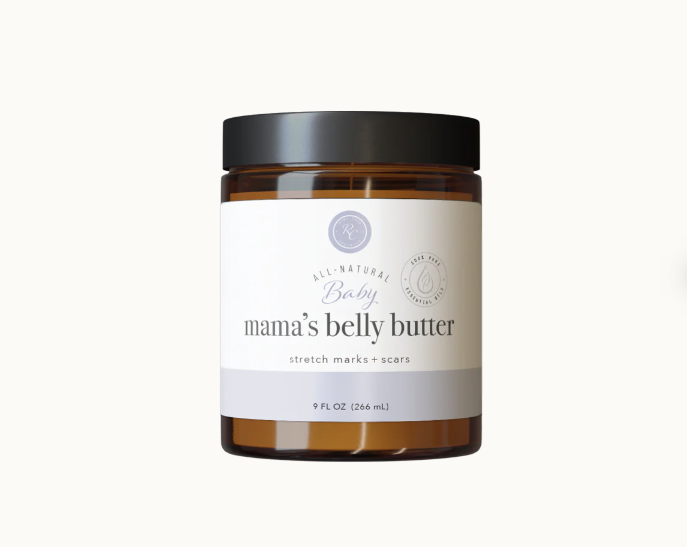 This light and creamy whipped butter is formulated with organic shea butter, cocoa butter, arrowroot powder, and the yummy scents of 100% pure, therapeutic grade essential oils lavender and vanilla. It will leave growing bellies feeling supple and moisturized while also helping to protect against and lighten existing stretch marks.