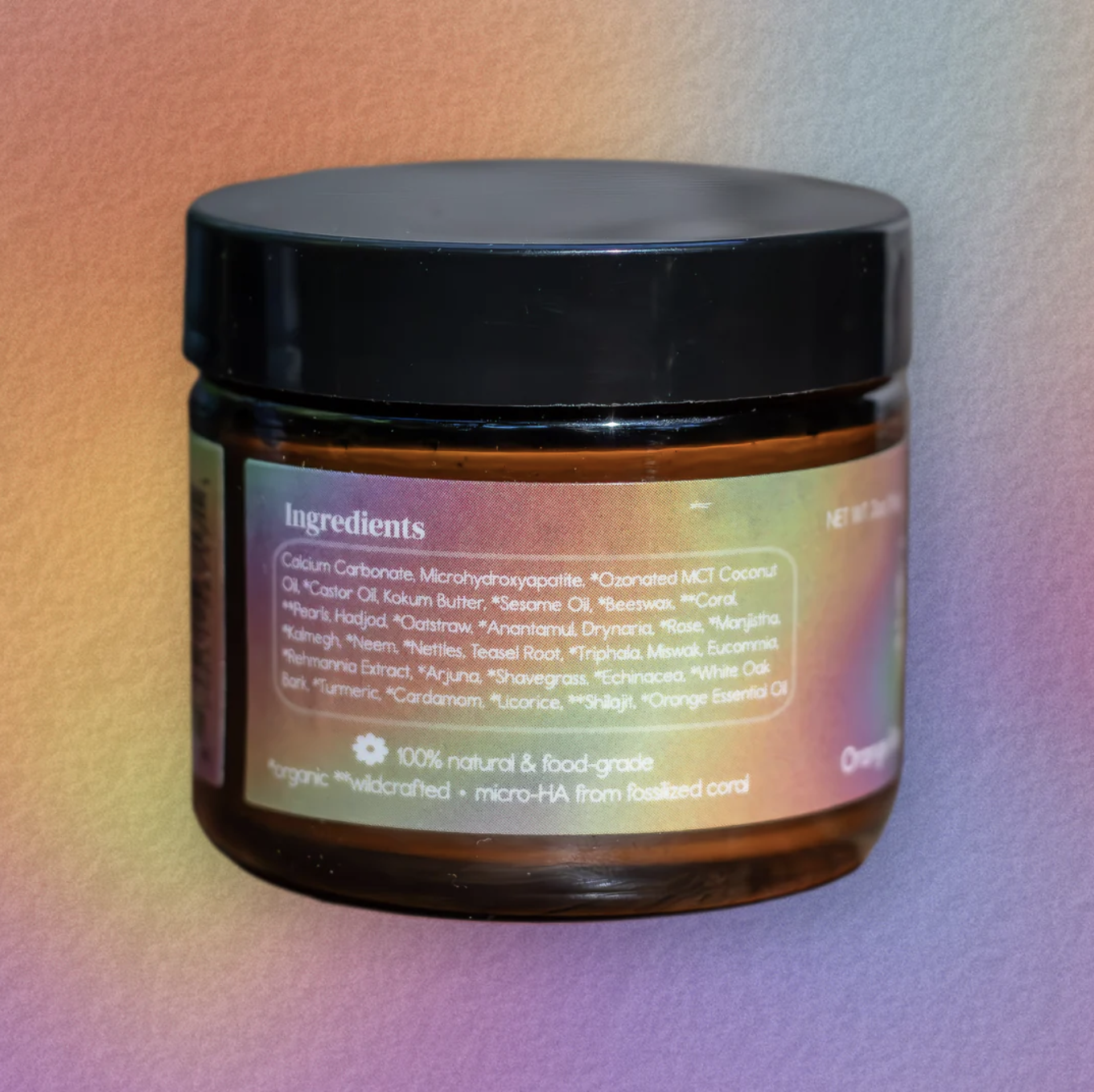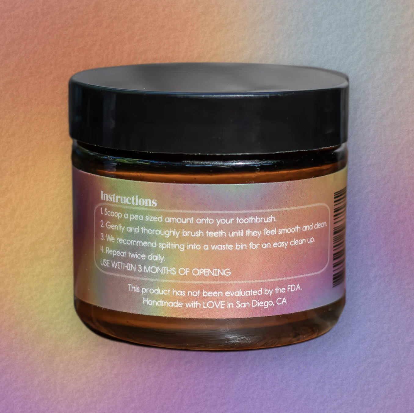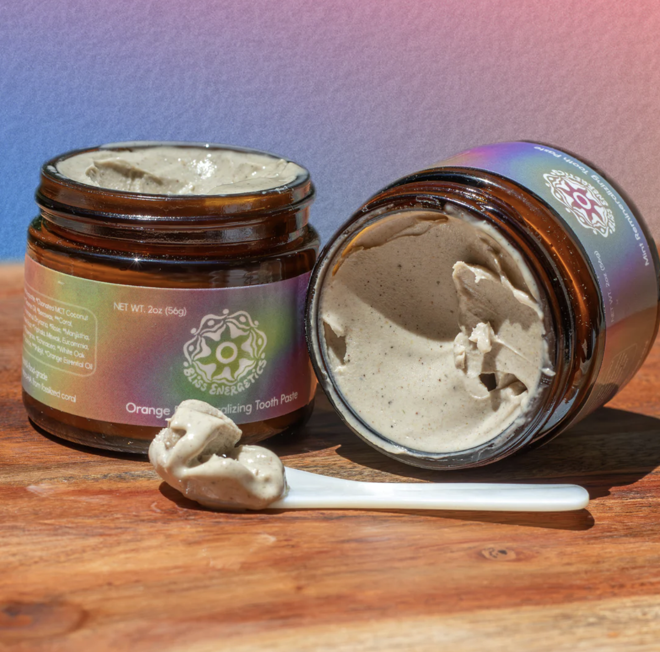 Why is our toothpaste oil-based? Think of it like oil cleansing for your face. Just as oils gently dissolve stuck sebum and toxins in the pores, oil-based tooth care softens and releases debris in the gum pockets, clears buildup, and carries healing herbs and minerals deep into the tissues—without disrupting your body’s natural protective layer.