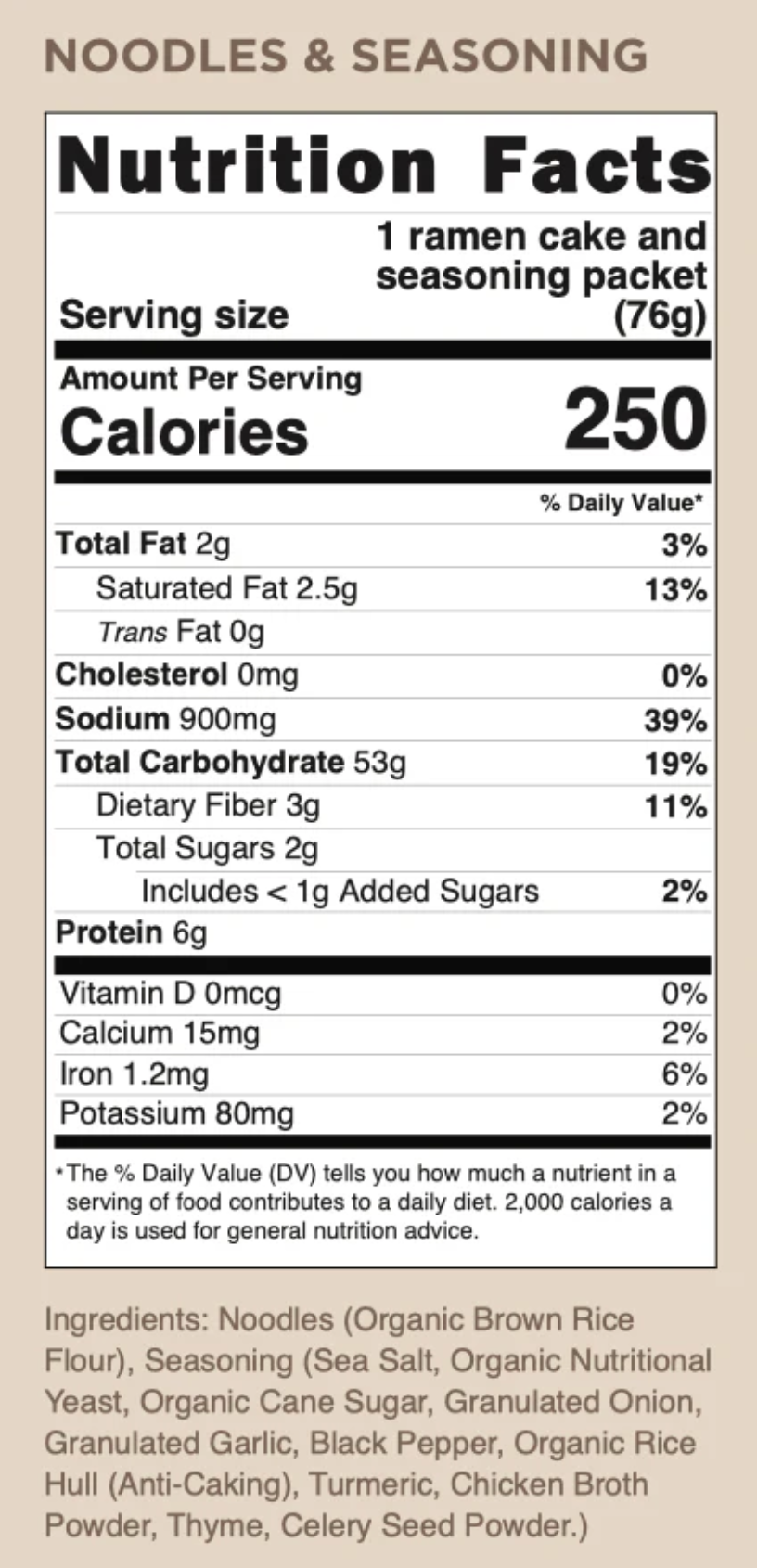 Some of our gluten-free competitors offer seasoning packets with their noodles, which is great, but I never cared for their flavors. The other thing I never liked was that the packets were loose inside the bag so that always caused me or my kids to dig through the pack, touching all of the cakes and causing more breakage of small pieces that just piled into the bottom of the bag. Because of these issues, we decided to seal each cake with a Chicken Ramen Seasoning packet on top. This way, if you or your kids want to pull out one cake and make it or take it to work, your individually sealed cake is protected from breaking up and causing a mess in your bag, and your seasoning is right there on top, easy to locate.