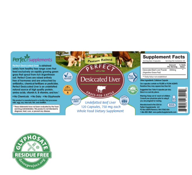 Perfect Desiccated Liver is obtained solely from healthy, grass-fed cows. Perfect Supplements believes that liver is a superfood, but in order for it to be beneficial, the liver must come from happy and healthy cows. The cows who help make Perfect Desiccated Liver graze exclusively on rapidly growing grass that sprouts from rich Argentinean soil. Perfect cows are untouched by hormones and antibiotics, and they never come into contact with chemical fertilizers, pesticides, or any other chemical contaminants. Perfect Desiccated Liver is the healthiest liver supplement for you and your family.