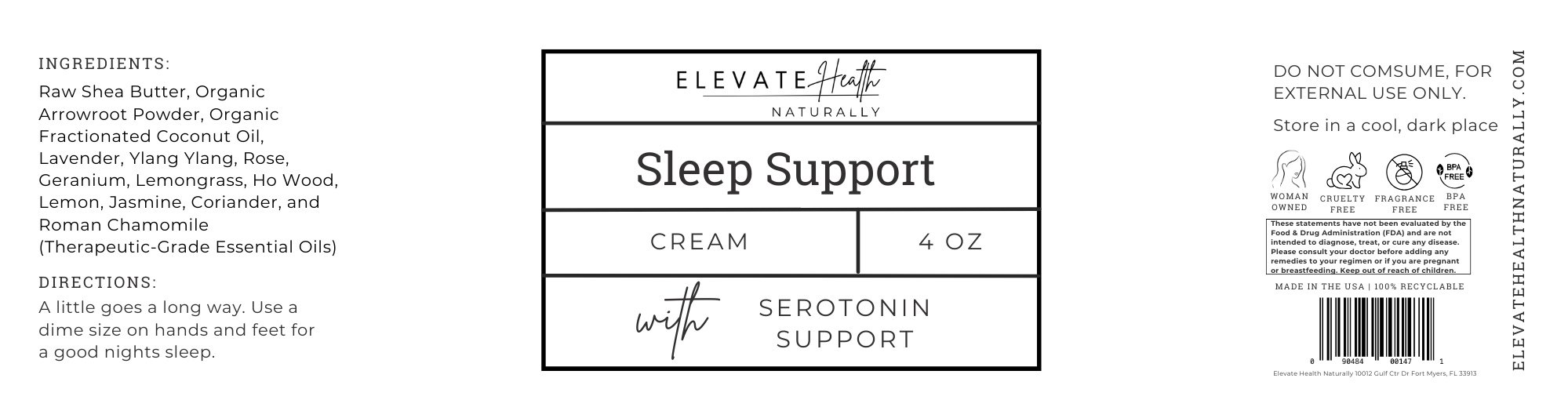 Our Elevate Health Naturally Sleep Support Cream is a rich, soothing topical designed to help the body unwind and transition into restful sleep. Formulated with nourishing plant butters and a thoughtfully balanced blend of therapeutic-grade essential oils, this cream supports relaxation, nervous system regulation, and healthy sleep patterns—without oral supplements or synthetic sleep aids. This cream is ideal for nightly use as part of a consistent wind-down ritual, helping signal safety and calm to the body.