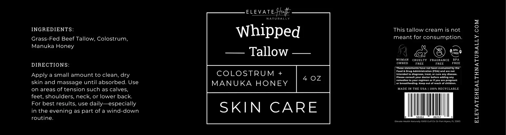 Colostrum + Manuka Honey: Grass-Fed Beef Tallow, Colostrum, Manuka Honey.