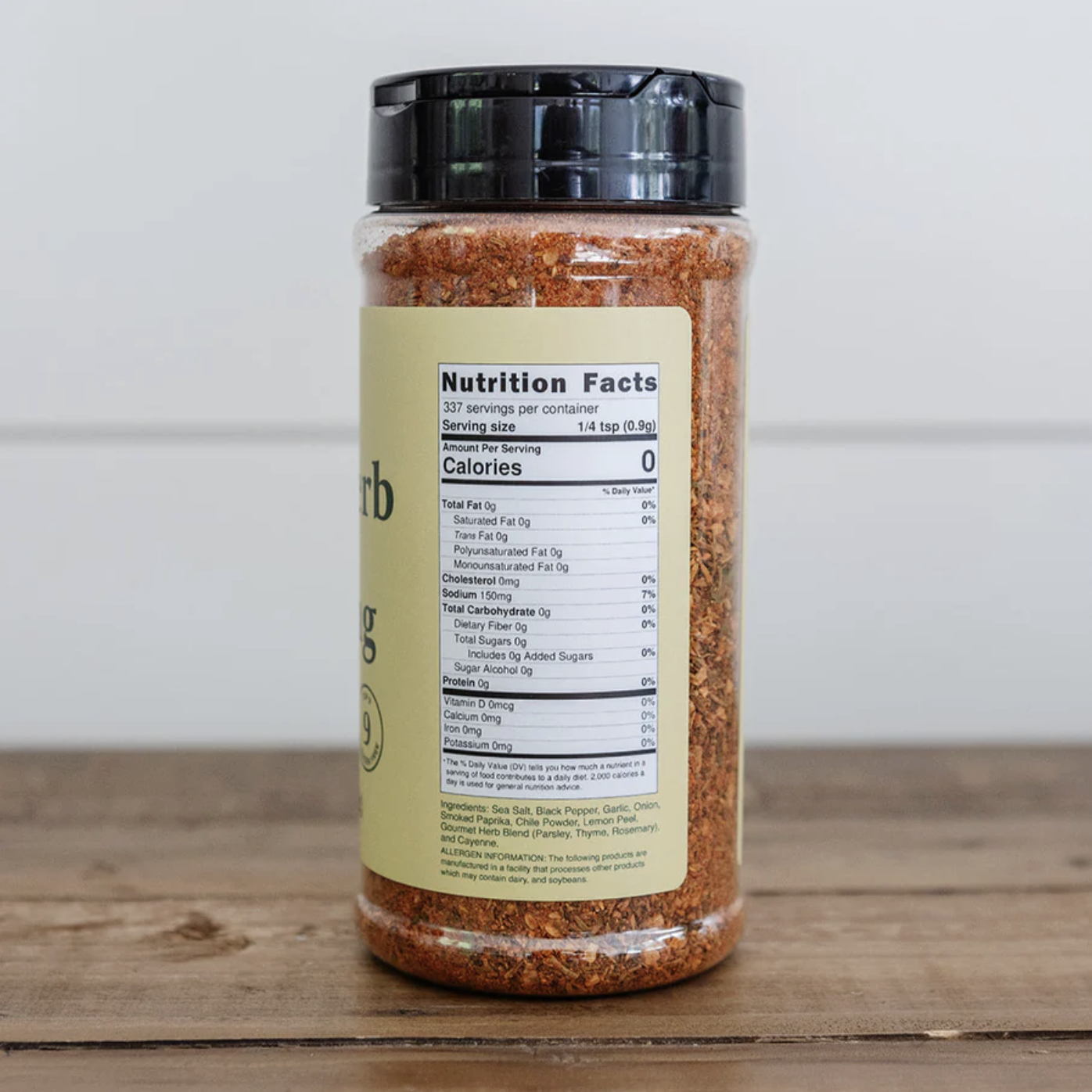 Sea Salt, Black Pepper, Garlic, Onion, Smoked Paprika, Chile Powder, Lemon Peel, Gourmet Herb Blend (Parsley, Thyme, Rosemary), Cayenne